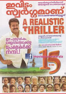 La películas Ividam Swargamanu del año 2009, está dirigida por Roshan Andrews y protagonizada por Mohanlal quien interpreta a Mathews, Thilakan en el papel de Jeremias, Lalu Alex como Aluva Chandy, Raai Laxmi personificando a Adv. Sunitha (as Lakshmi Rai) y Priyanka Nair desempeñando el papel de Betsy (ver créditos completos).