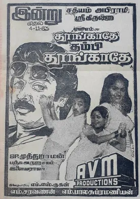 La películas Thoongathey Tambi Thoongathey del año 1983, está dirigida por S.P. Muthuraman y protagonizada por Kamal Haasan quien interpreta a Gopi and Vinoth, Radha en el papel de Padhmini, Goundamani como Servidor, Janagaraj personificando a Doctor y V.K. Ramasamy desempeñando el papel de (ver créditos completos).